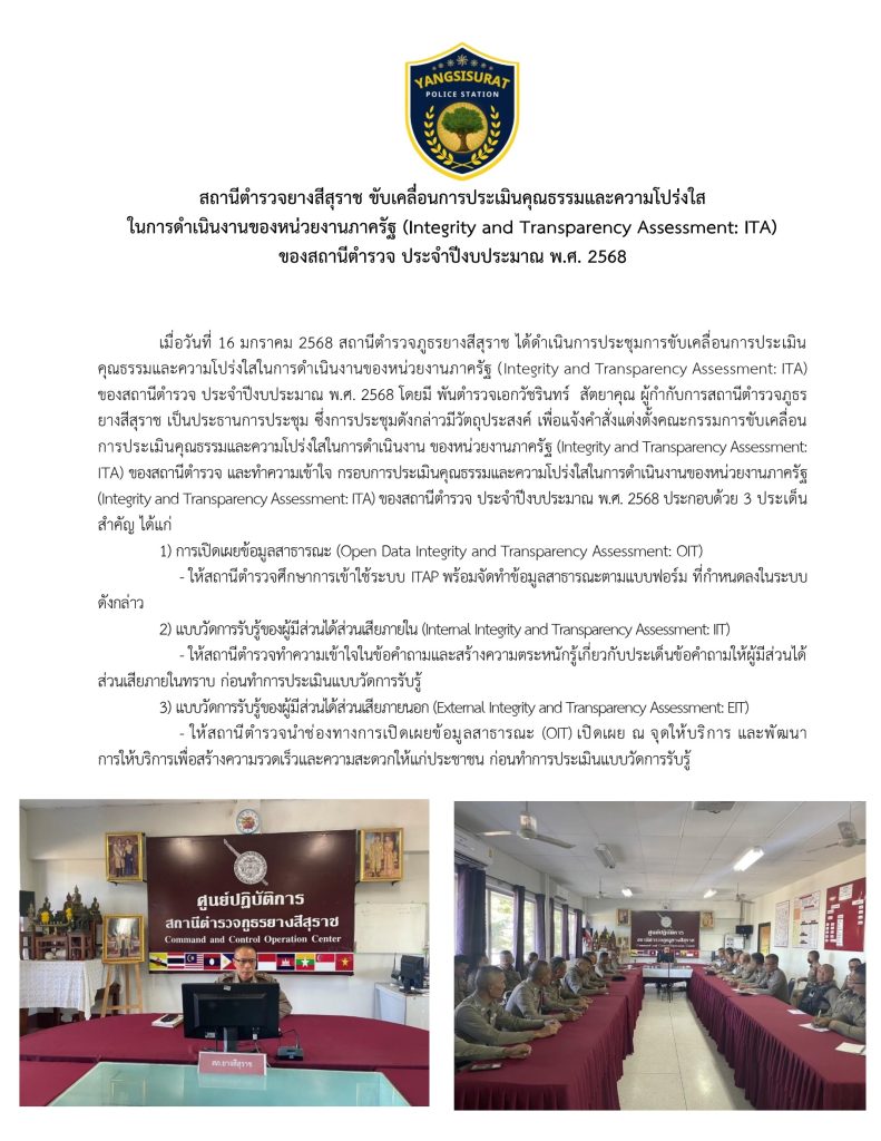 (Integrity & Transparency Assessment: ITA) ประจำปีงบประมาณ 2568